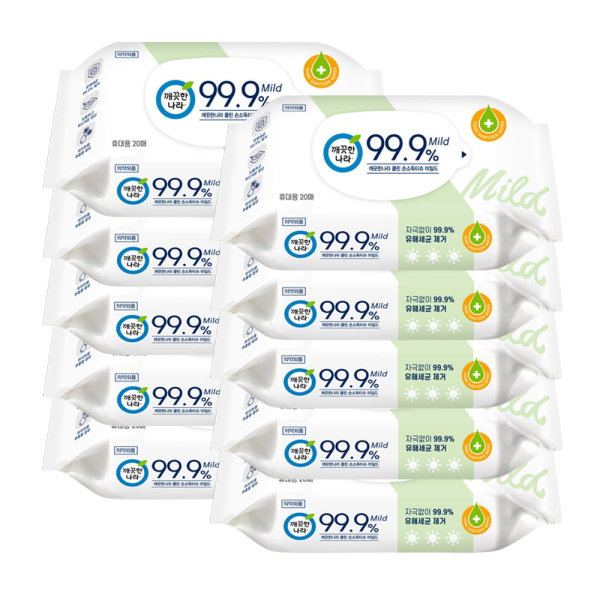 [깨끗한나라] 손소독 물티슈 마일드 휴대용 20매 10입