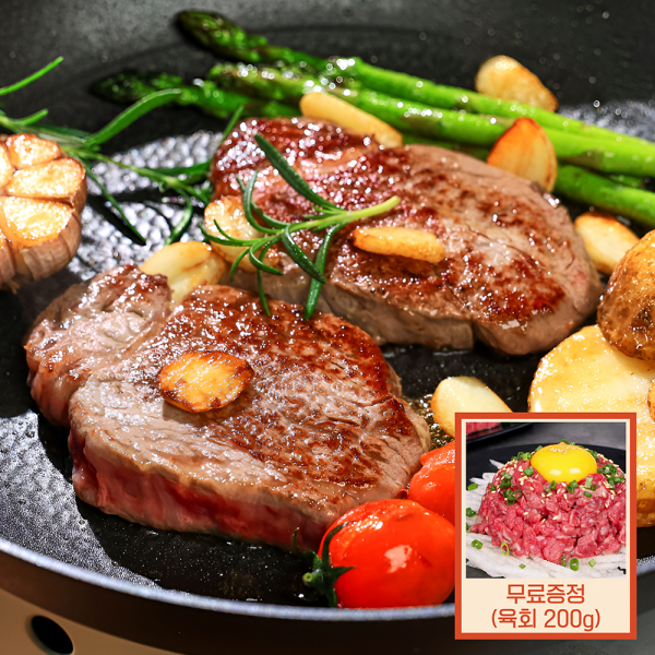 국내산 1등급 소고기 캠핑시즌 두툼한 스테이크용 한판 특가세트2+육회 200g 무료증정