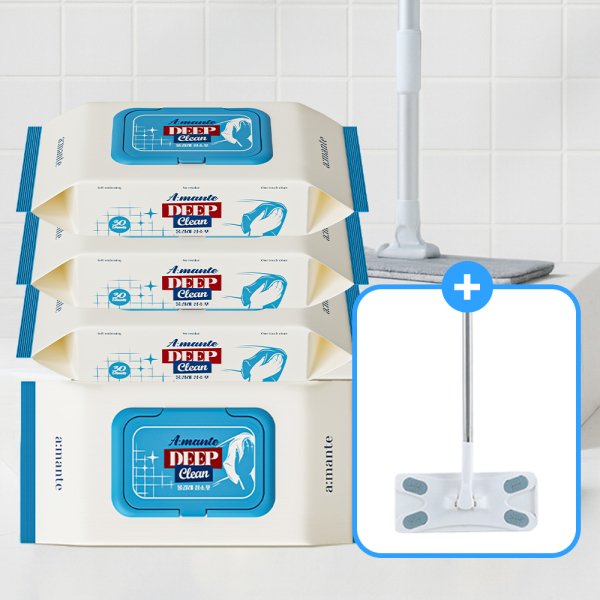아망떼 물걸레청소포 먼지 바닥 청소물티슈 대형 4팩 120매 + 밀대 사은품