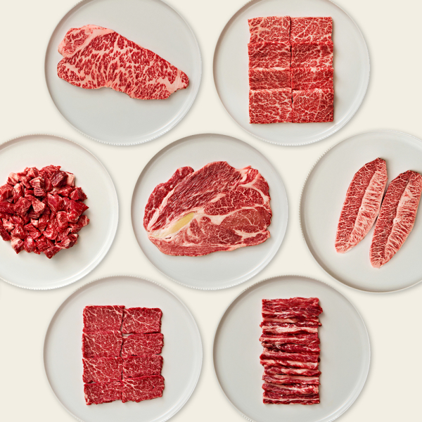 두툼한 스테이크용 국내산 1등급 육우 마장동 소고기 캠핑 (등심, 부채살, 안심, 채끝살, 꽃갈비살)