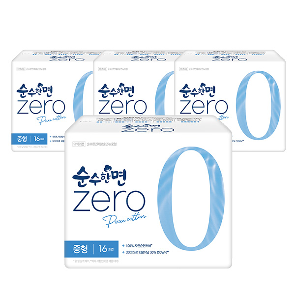 깨끗한나라 순수한면 제로 생리대 중형 16P x 4팩