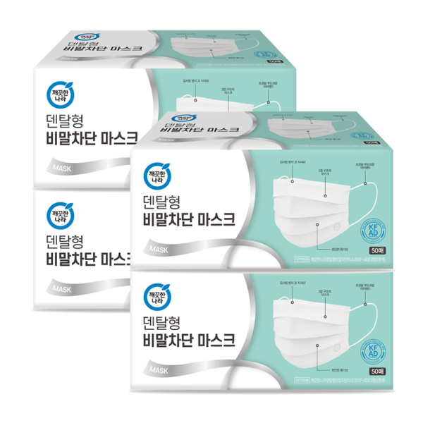 [깨끗한나라] 덴탈형 비말차단 마스크 KF-AD 50매 4개