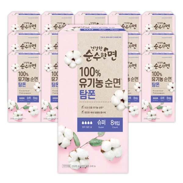 [깨끗한나라] 순수한면 유기농 탐폰 슈퍼 8개입 16팩