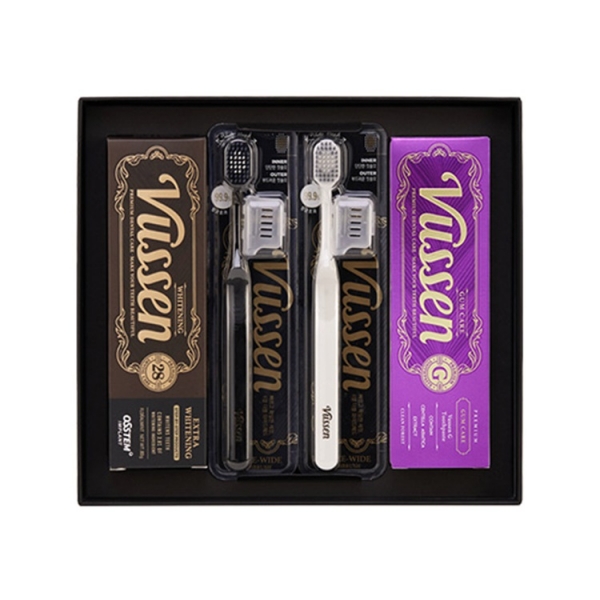 [오스템 뷰센]치약칫솔 4종 덴탈세트(28미백xG잇몸x더블와이드2개)_쇼핑백포함