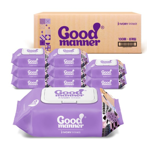 [행복S&P제지]굿매너 프리미엄엠보_물티슈 100매*8팩