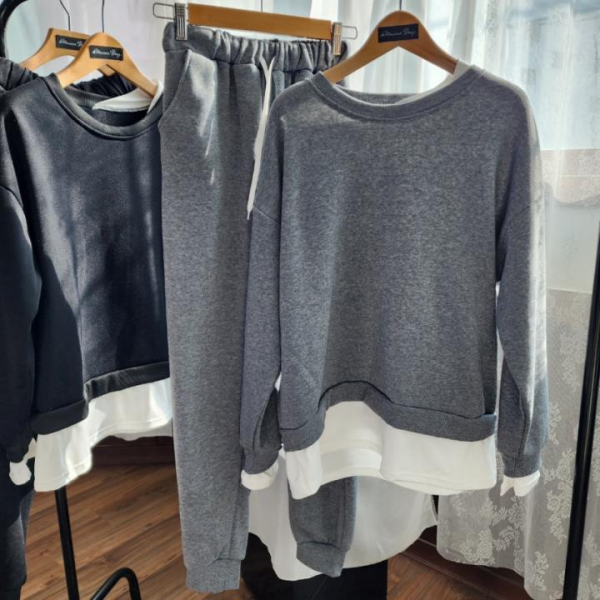 언발 레이어드 넥 기모 트레이닝 세트 2col