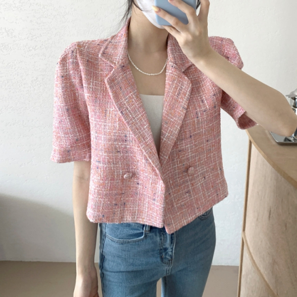 여름 트위드 어깨셔링 크롭 자켓 3col