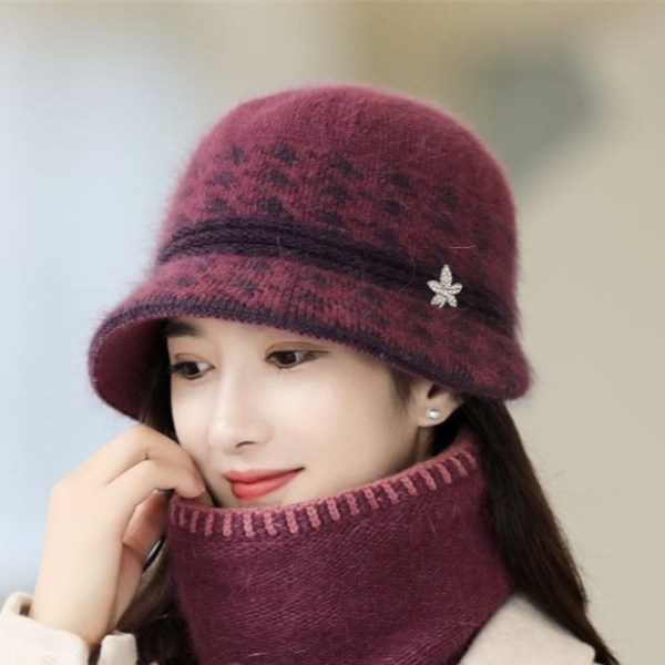 따뜻한 겨울 중년 여성 엄마 할머니 큐빅 울 모자