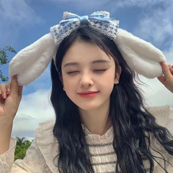 귀여운 페이크퍼 리본 토끼귀 헤어 집게핀 2P
