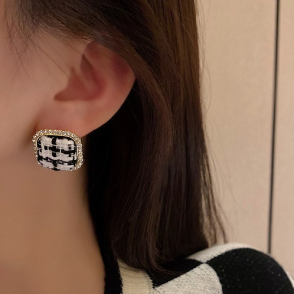 S925 트위드 큐빅 써라운드 스퀘어 귀걸이