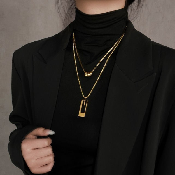 티타늄 스틸 더블 레이어 팬던트 목걸이