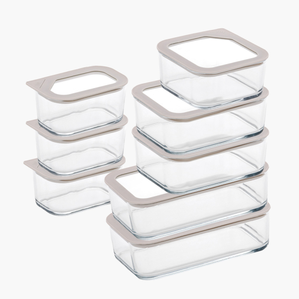 [네오플램] 피카원 글라스 모듈형 유리 밀폐용기 8종세트 (직사각530ml*3+정사각930ml+직사각1,300ml*2+1,600ml*2) (화이트) [품절]