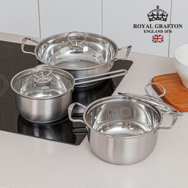[로얄그래프톤] 아네트 IH 인덕션 스텐냄비 3종세트 (편수 18cm, 양수 20cm, 전골 26cm) [품절]