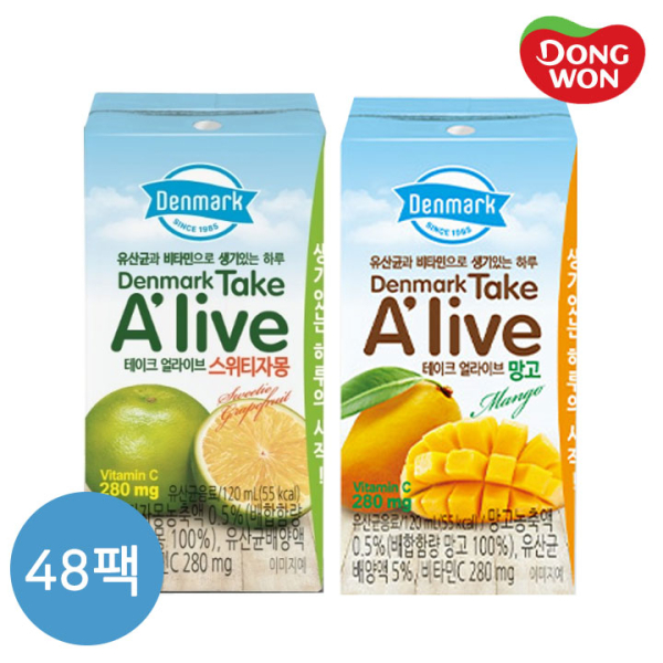 [동원] 덴마크 테이크 얼라이브 스위티자몽 120ml x 24개 + 망고 120ml x 24개