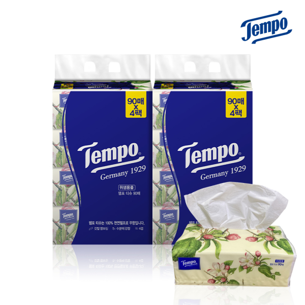 독일 템포 소프트팩 4겹 천연펄프 미용티슈 90매 4입 X 2팩