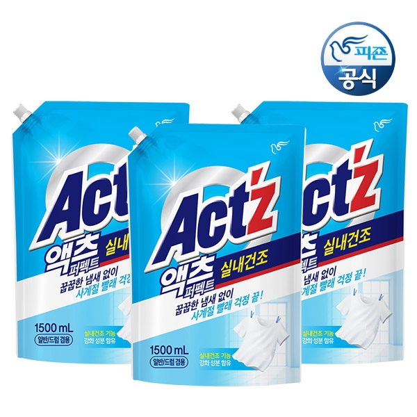 액츠 퍼펙트 실내건조 세탁세제 일반드럼겸용 1.5Lx3