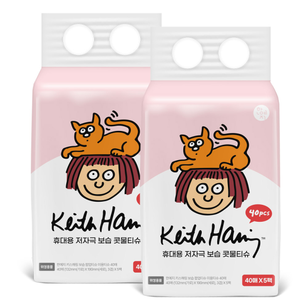 한예지 키스해링 휴대용 저자극 보습 비염 콧물 미용티슈 40매 5개 (2팩)