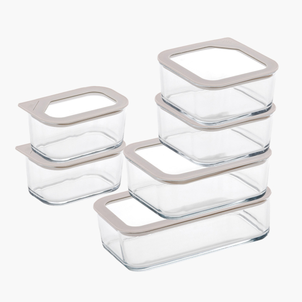 [네오플램] 피카원 글라스 모듈형 유리 밀폐용기 6종세트 (직사각530ml*2+정사각930ml*2+직사각1,300ml+1,600ml) (화이트) [품절]