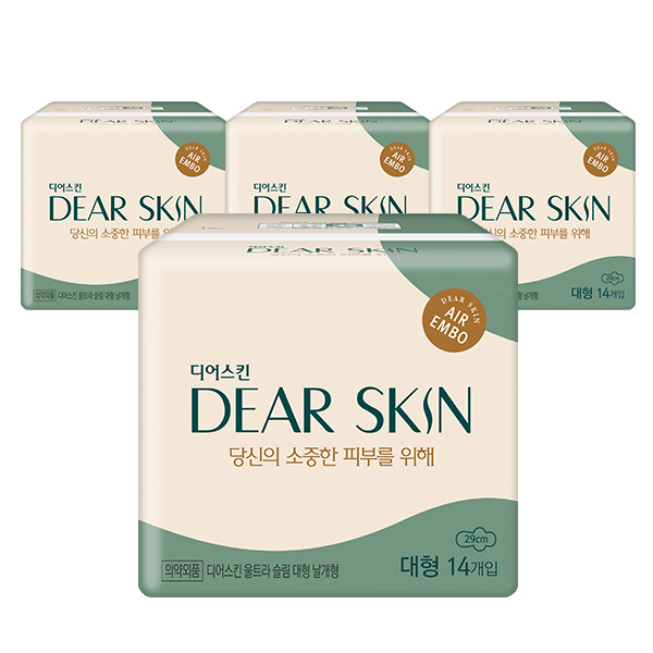 깨끗한나라 디어스킨 에어엠보 생리대 대형 14P x 4팩