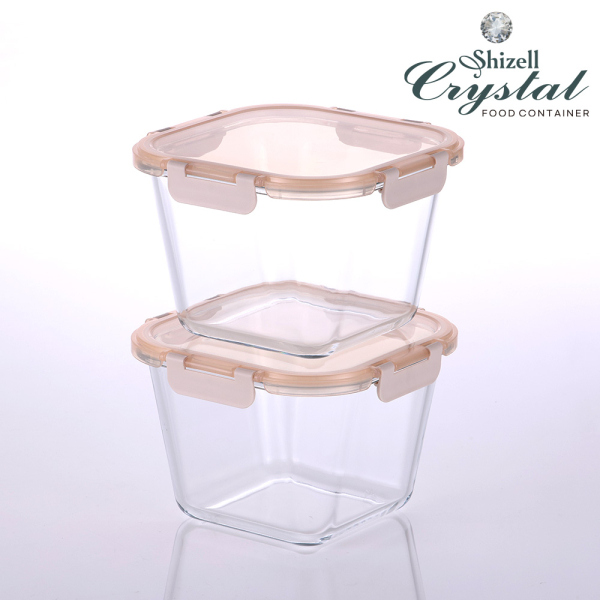 [쉬젤] 크리스탈 Deep 내열 밀폐용기 정사각 2종세트 대 (1950ml×2개) [품절]