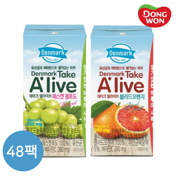 [동원] 덴마크 테이크 얼라이브 머스캣청포도 120ml x 24개 + 블러드오렌지 120ml x 24개