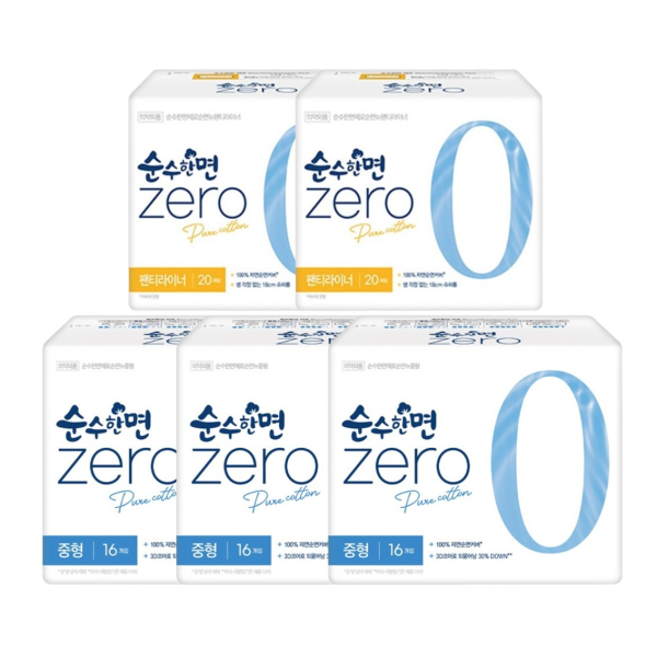 순수한면 제로 중형(16P) 3팩 + 팬티라이너(20P) 2팩