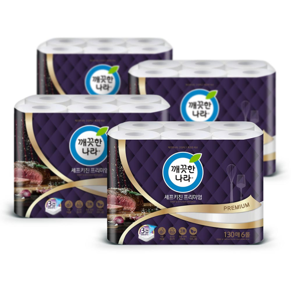 [깨끗한나라] 셰프키친 프리미엄 키친타올 130매 6롤 4팩