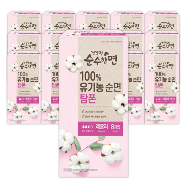 [깨끗한나라] 순수한면 유기농 탐폰 레귤러 8개입 16팩