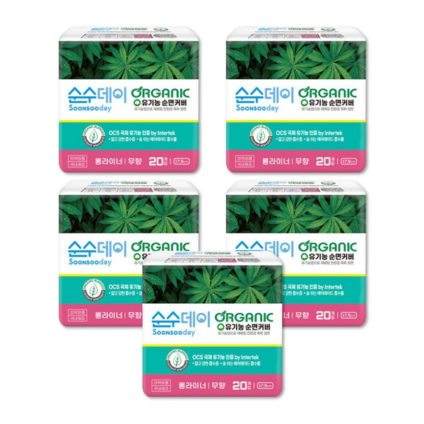샐리의법칙 순수데이 오가닉 프리미엄 유기농생리대 롱팬티라이너 20P 5팩