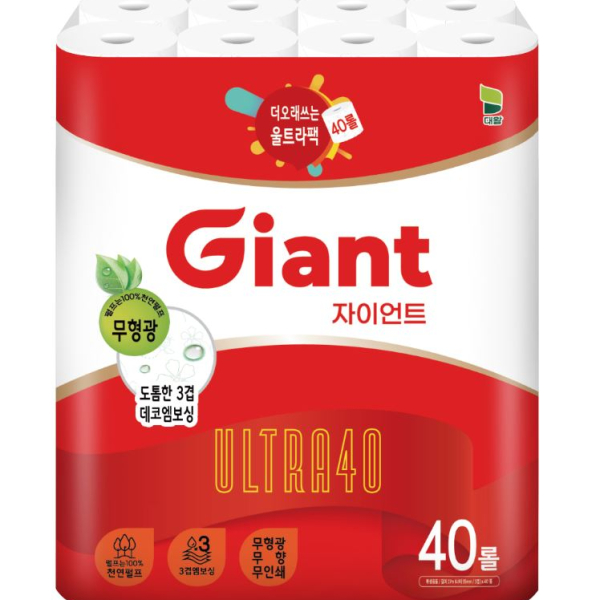 대왕 자이언트 울트라 40 천연펄프 대용량 40롤 화장지 1팩