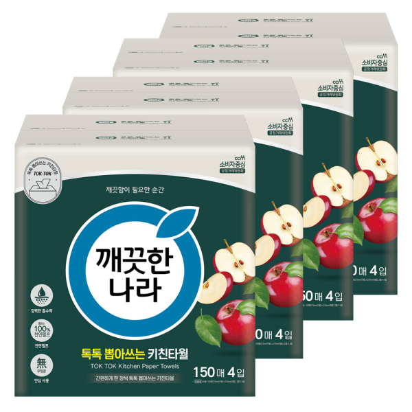 [깨끗한나라] 뽑아쓰는 키친타올 톡톡 150매 4입 4팩
