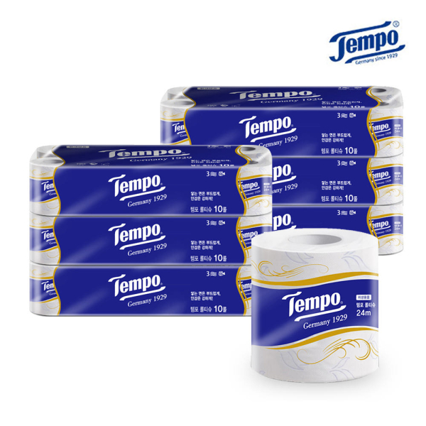 독일 템포 3겹 프리미엄 천연펄프 화장지 10롤 6팩(107mm광폭)