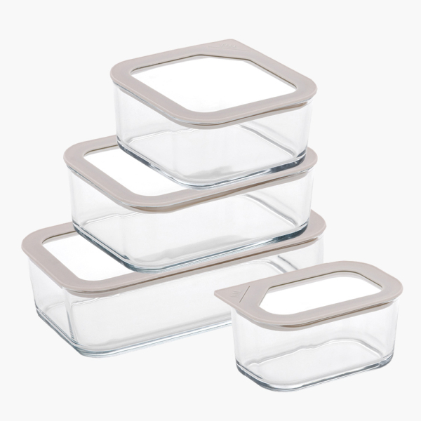 [네오플램] 피카원 글라스 모듈형 유리 밀폐용기 4종세트 (직사각530ml+정사각930ml+직사각1,300ml+1,600ml) (화이트) [품절]