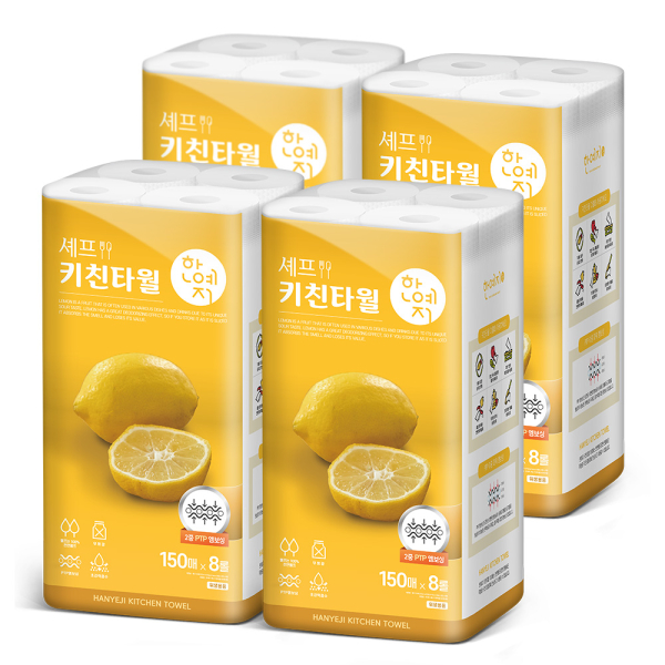 한예지 천연펄프 셰프키친타올 150매 8롤 (4팩)