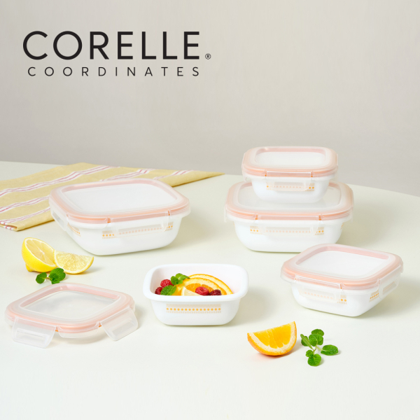 [코렐] 코디네이츠 밀크글라스 밀폐용기 자카드 밴드 정사각 5종 [품절]