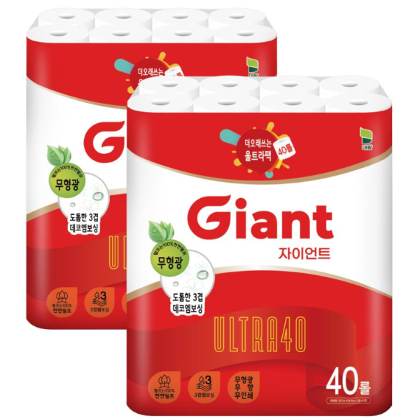대왕 자이언트 울트라 40 천연펄프 대용량 40롤 2팩 총 80롤
