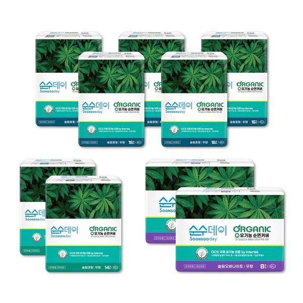 샐리의법칙★알뜰특가★순수데이 오가닉 프리미엄 유기농생리대 중형 5팩 + 대형 2팩 + 오버나이트 2팩