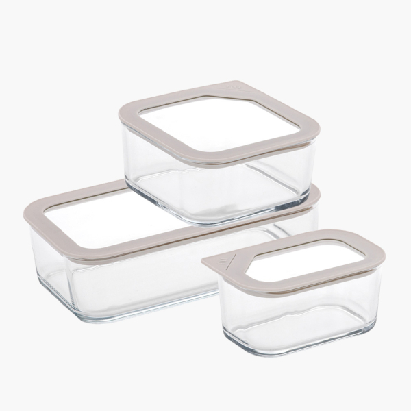 [네오플램] 피카원 글라스 모듈형 유리 밀폐용기 3종세트 B (직사각530ml+정사각930ml+직사각1,600ml) (화이트) [품절]