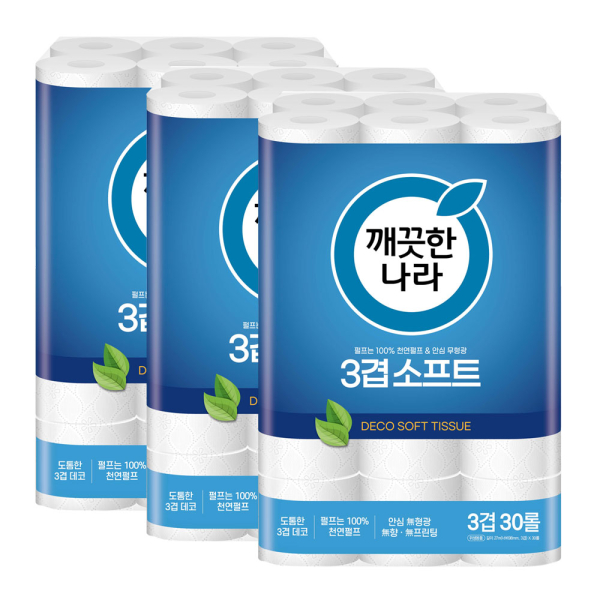 [깨끗한나라] 화장지 3겹 소프트 27m 30롤 3팩