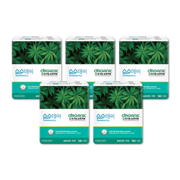샐리의법칙 순수데이 오가닉 프리미엄 유기농생리대 대형 14P 5팩