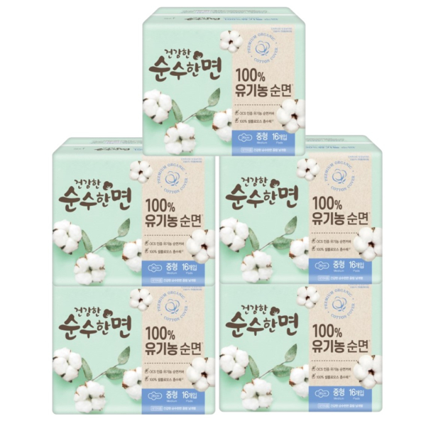 건강한 순수한면 유기농 순면 중형(16P) 5팩