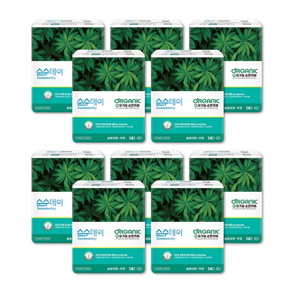 샐리의법칙 순수데이 오가닉 프리미엄 유기농생리대 대형 14P 10팩