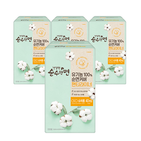 깨끗한나라 건강한 순수한면 유기농생리대 순면 팬티라이너 40P x 4팩