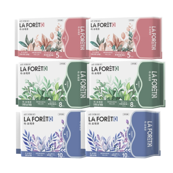 라포레Q 초슬림 순면생리대 중형(10P) 2팩+대형(8P) 2팩+오버나이트(5P) 2팩
