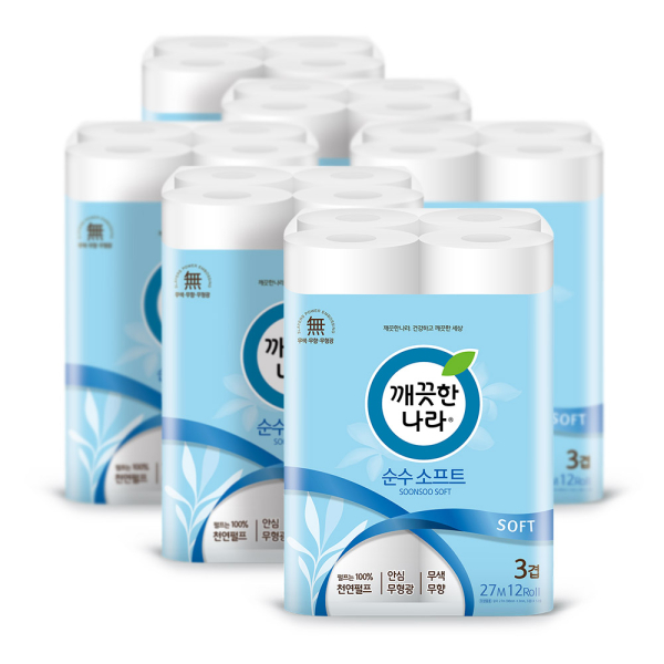 [깨끗한나라] 화장지 순수 소프트 27m 12롤 6팩