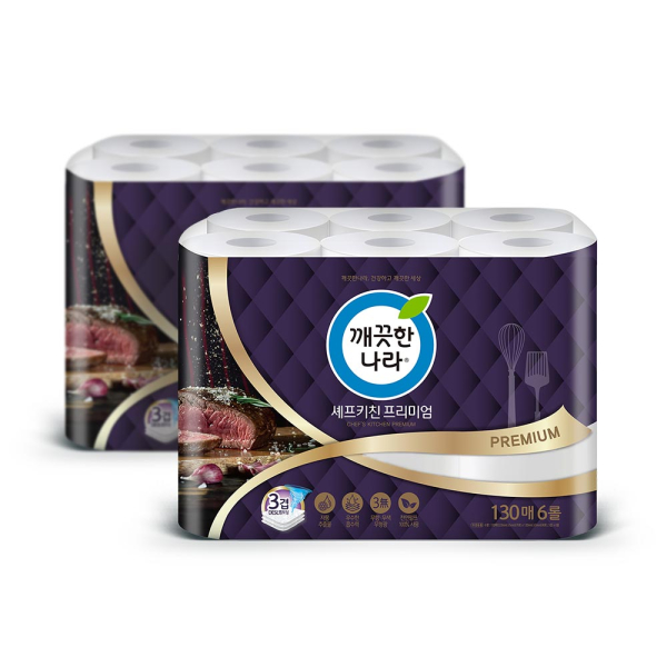 [깨끗한나라] 셰프키친 프리미엄 키친타올 130매 6롤 2팩
