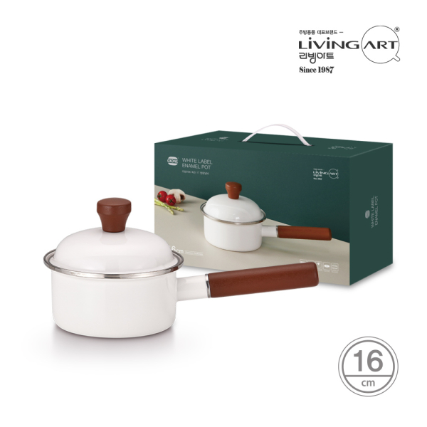 [리빙아트] 옥슨 법랑냄비 화이트라벨 편수 16cm [품절]
