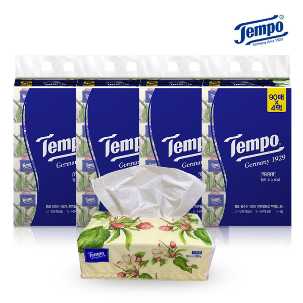 독일 템포 소프트팩 4겹 천연펄프 미용티슈 90매 4입 X 4팩
