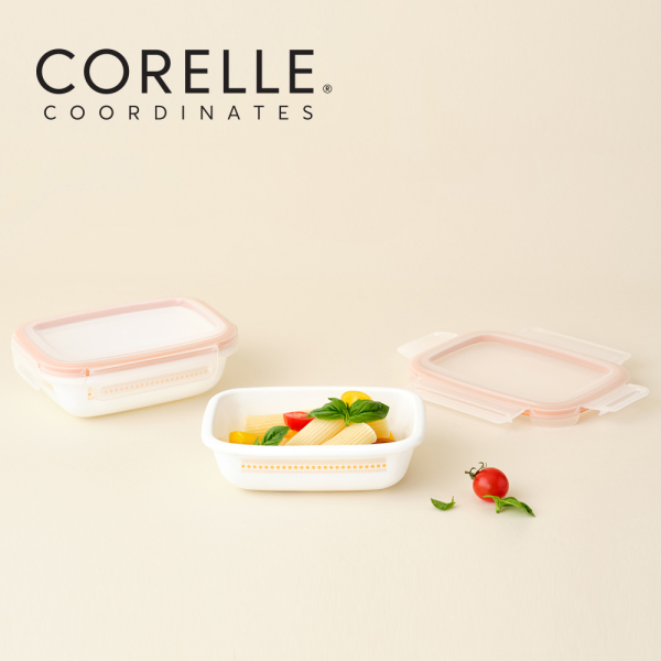 [코렐] 코디네이츠 밀크글라스 밀폐용기 자카드 밴드 직사각 2종 [품절]