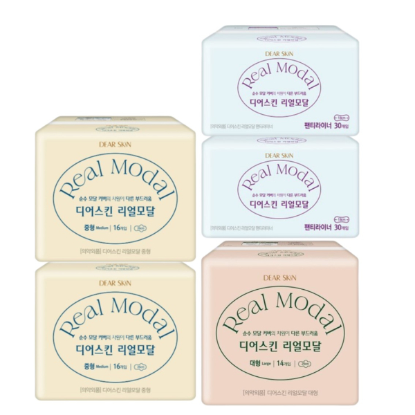 디어스킨 리얼모달 중형(16P) 2팩+대형(14P) 1팩+팬티라이너(30P) 2팩